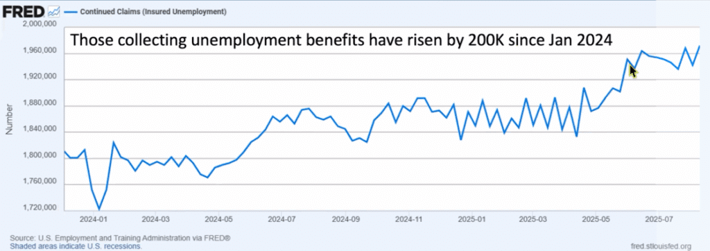 Official numbers may say the labor market is stable — but this chart tells a different story. 200,000 more people are on unemployment benefits since January. Add in those who aren’t even counted, and the Fed’s ‘solid’ narrative looks shaky at best.
