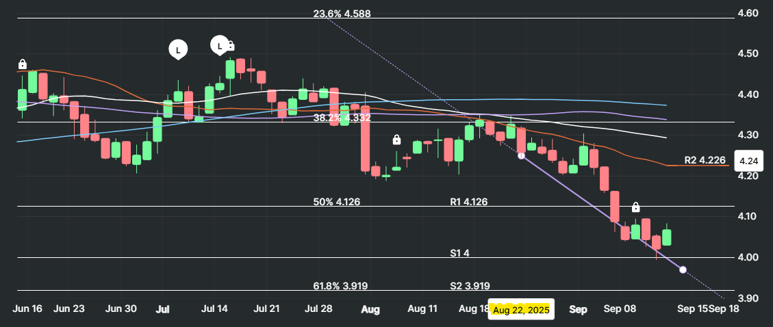 The yellow highlight marks Aug 22, 2025 – the day the Fed hinted at a rate cut.